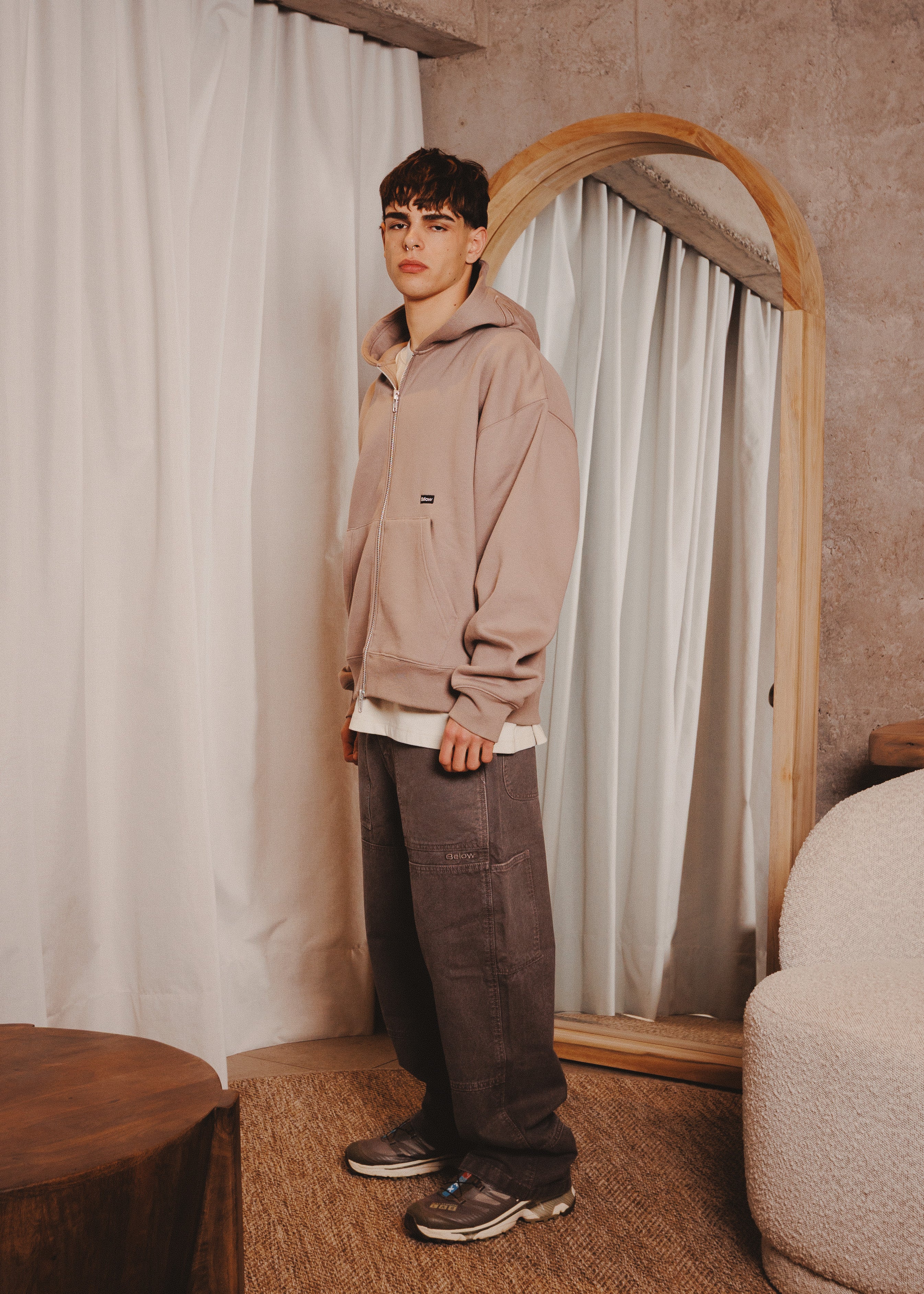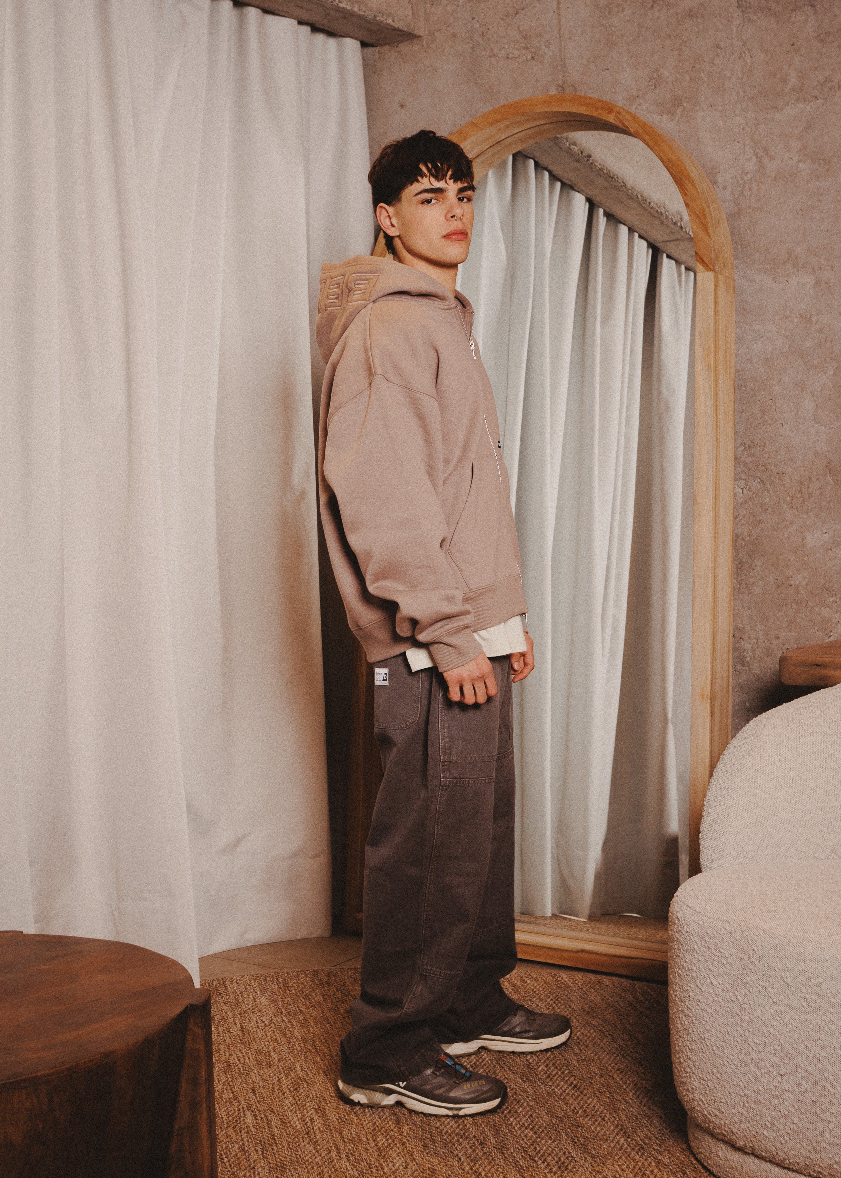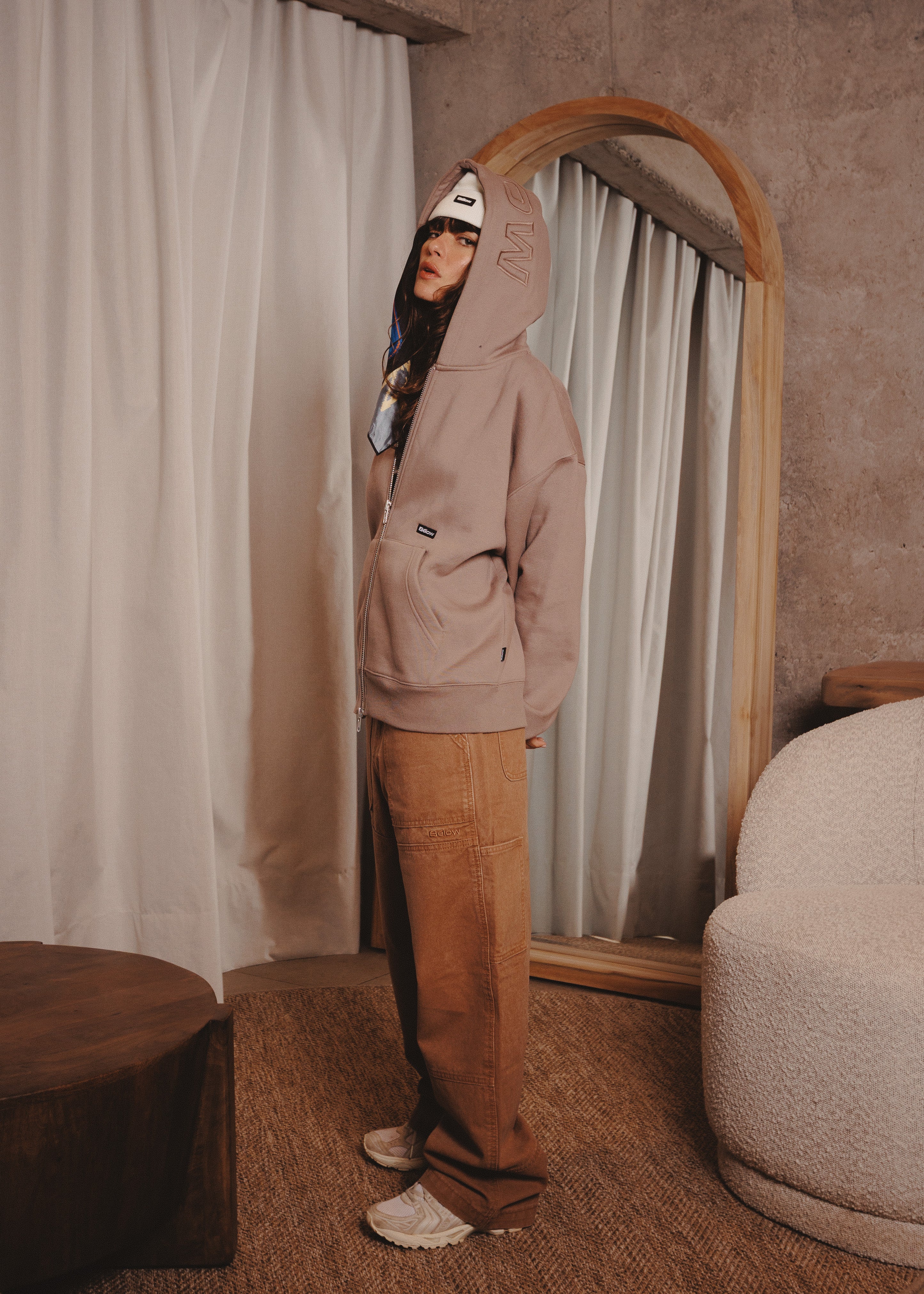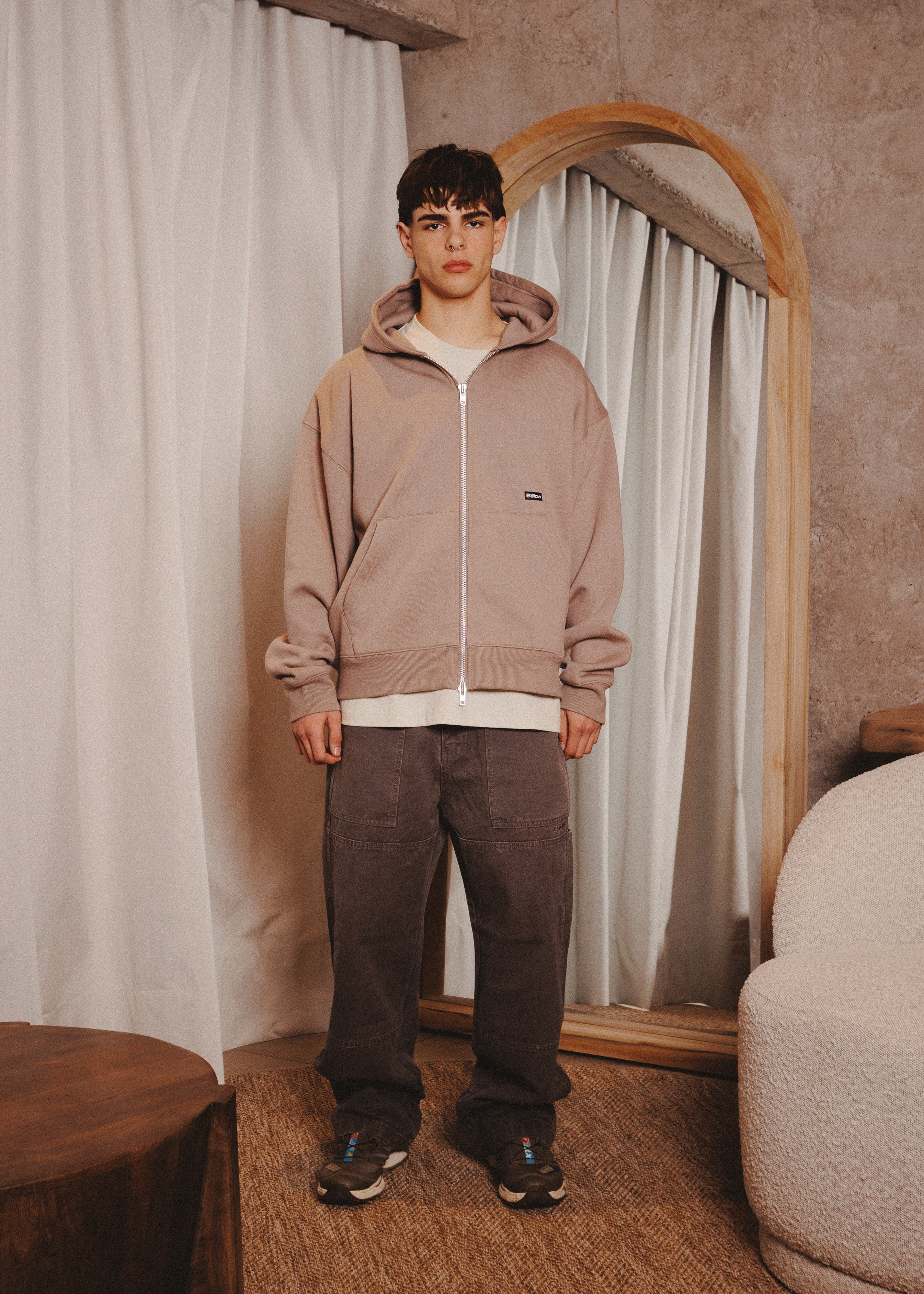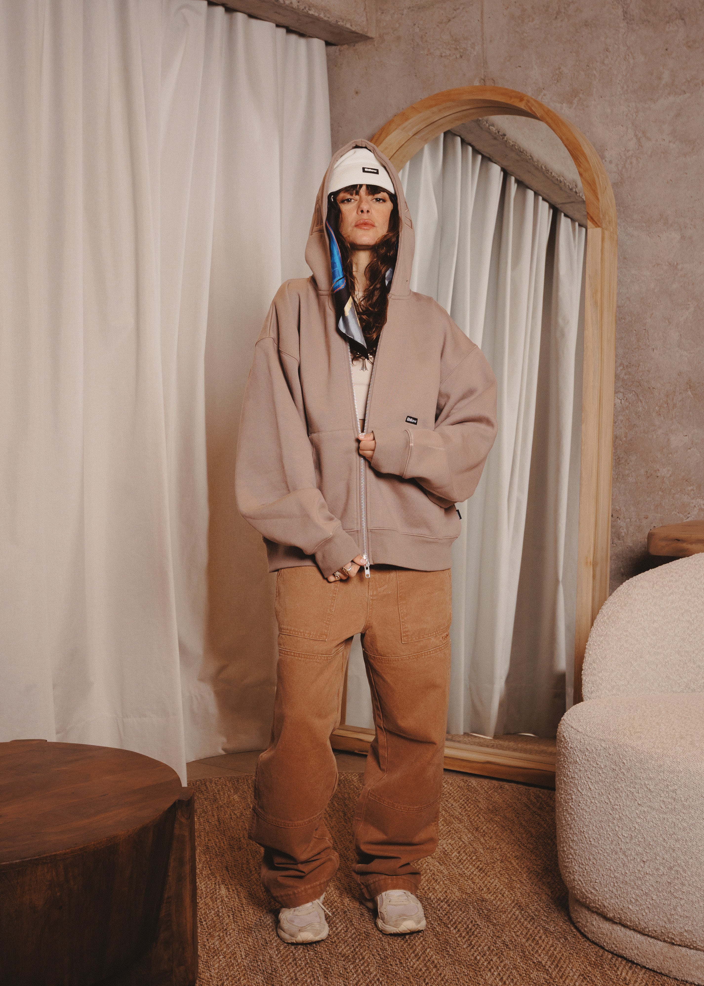 ZIPUP HOODIE THE CAP TAUPE